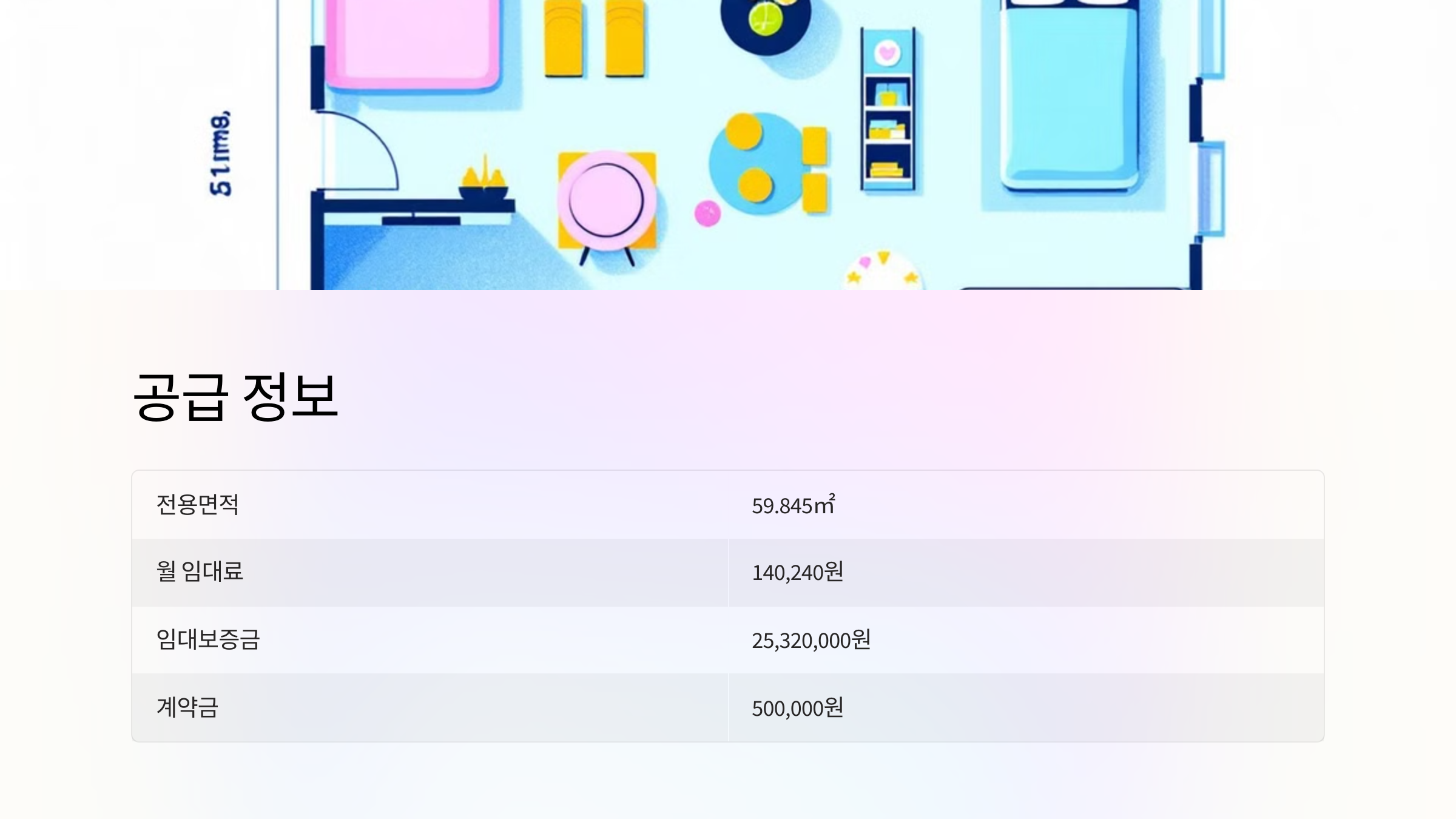 모집공고 및 공급 조건, 신청 방법 등 세부 사항은 반드시 공급기관의 공고문을 통해 다시 한 번 확인하시기 바랍니다.