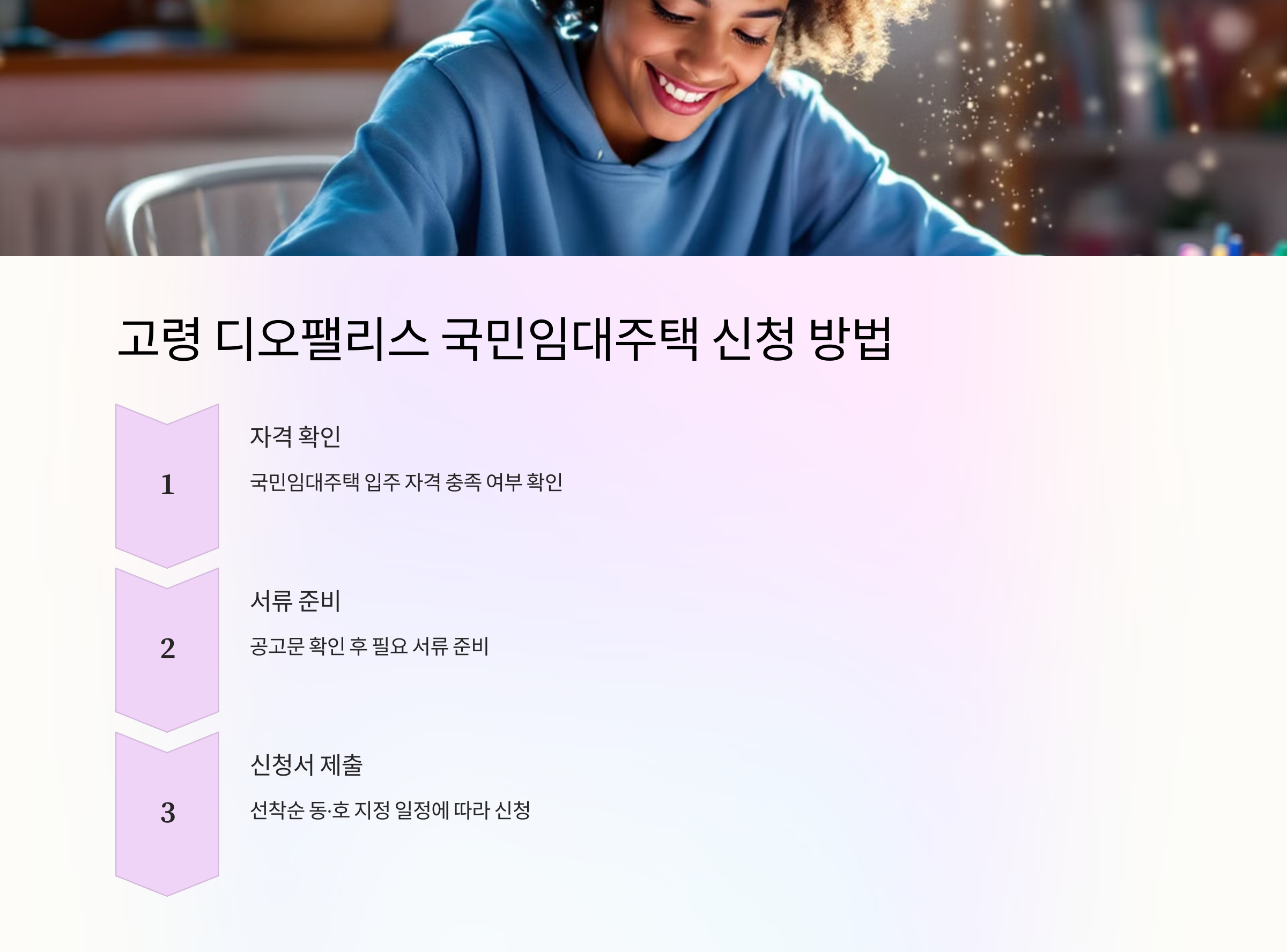 신청 절차를 성공적으로 마무리하려면 공고문에 따른 정확한 서류 제출, 자격 요건 충족, 기한 내 접수가 가장 중요합니다. 이를 잘 준수하면 고령 디오팰리스 국민임대주택 입주 기회를 얻을 수 있을 것입니다.