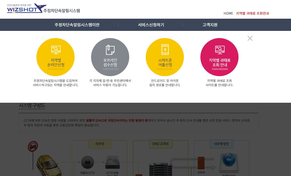 무인단속 CCTV에 의한 주정차 단속시 과태료 스티커미부탁으로 단속사실을 인지하지 못한 운전자가 계속하여 동일 장소에서 위반하는 사례가 다수 발생하고 있어 이러한 민원 업무를 사전경고 안내 메세지를 전송함으로써 불법주정차 민원을 줄이고자 하는 서비스 입니다.